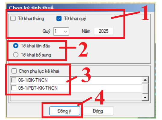 + Đối với những doanh nghiệp thuộc đối tượng kê khai thuế TNCN theo quý thì tích chọn vào ô “Tờ khai quý” rồi chọn quý/năm cần kê khai